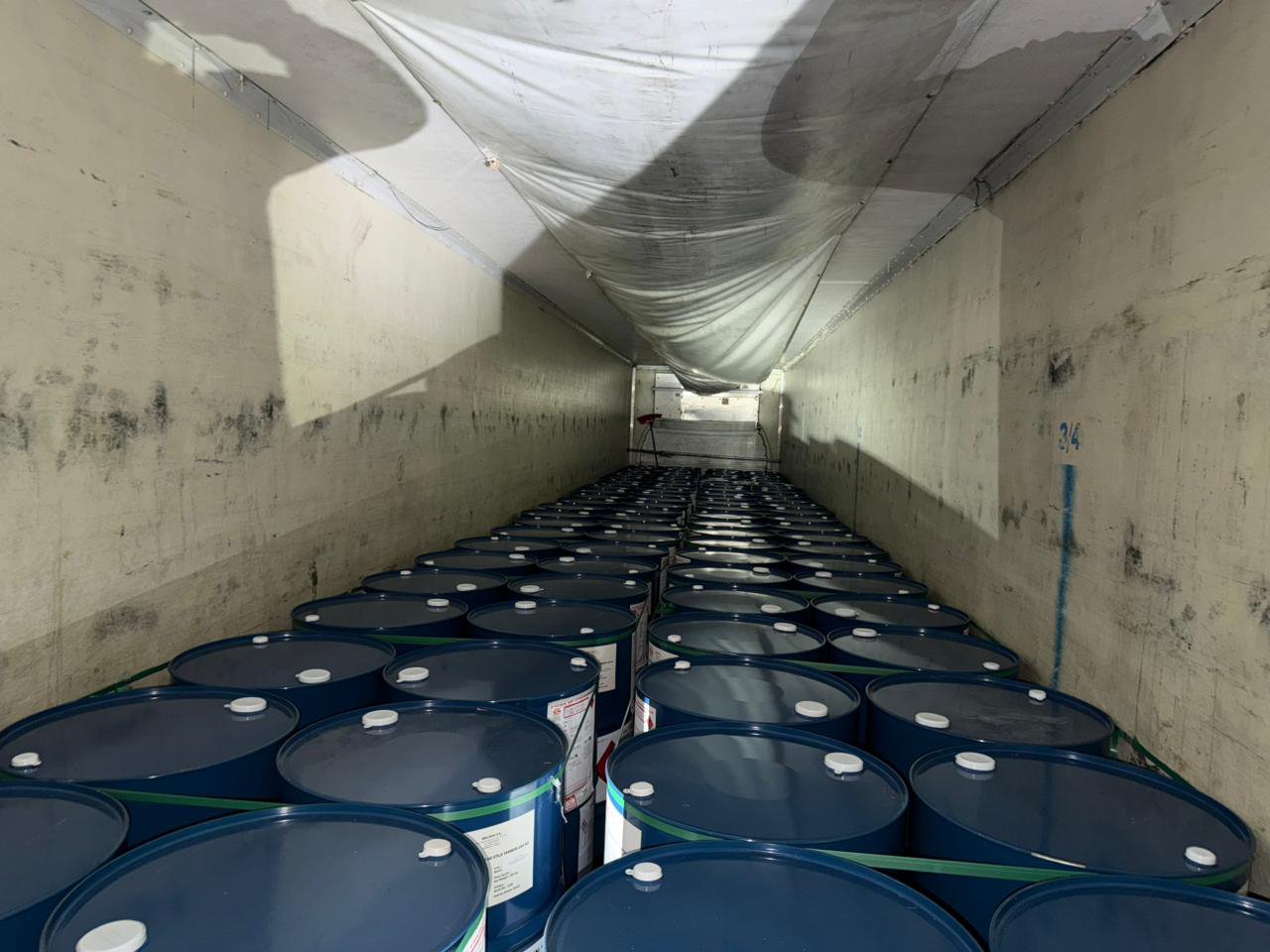 Durante la inspección física de los vehículos, los gendarmes constataron que ambos transportaban cargas peligrosas sin cumplir con las medidas de seguridad exigidas. En total, se contabilizaron 191 tambores —95 en uno de los rodados y 96 en el otro— identificados como acetato de etilo, con un peso individual de 184 kilos. El pesaje final arrojó un total de 35.144 kilogramos.