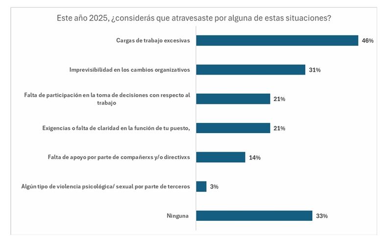 - Más de la mitad tiene responsabilidades de cuidado familiar, lo que agrava la sobrecarga laboral y emocional.